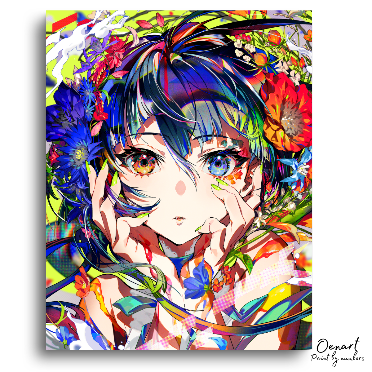 Kawaii Anime Girl with Flowers - Anime Paint By Numbers Kit