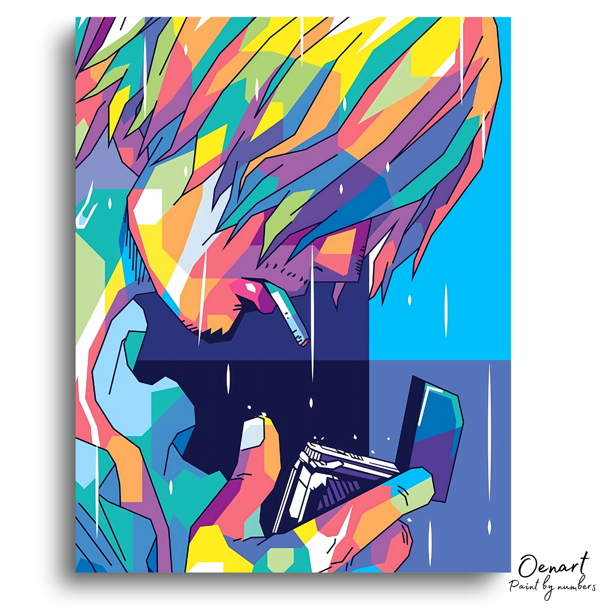 Finished anime paint-by-numbers artwork on canvas
