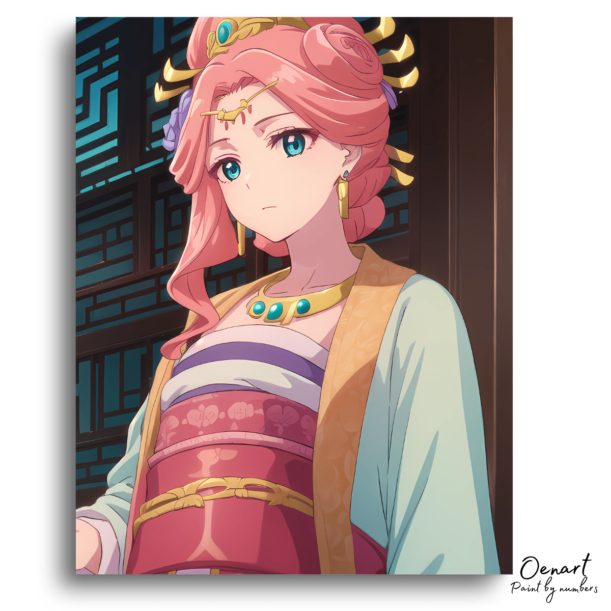 Finished anime paint-by-numbers artwork on canvas